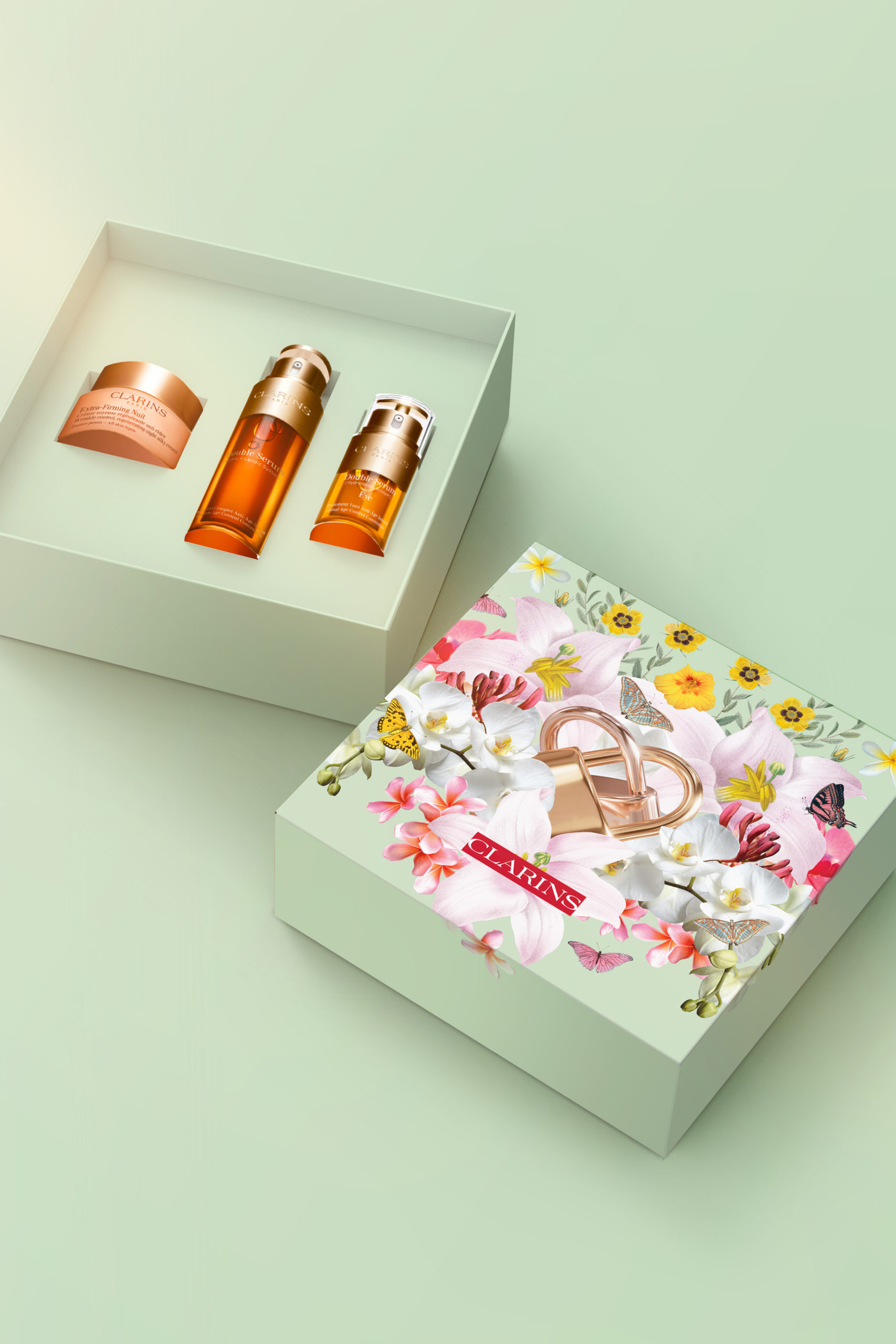 The packaging design combines metallic, satin, and glossy effects with elegant embossing.