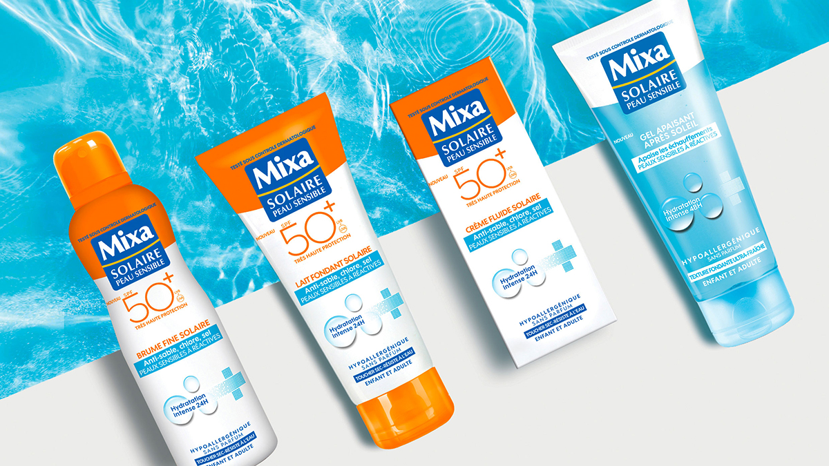 Bronson renouvelle la gamme de soins solaires Mixa, en mettant en avant une nouvelle génération de formules : super sûre et avec une triple protection contre le sable, le sel et le chlore.