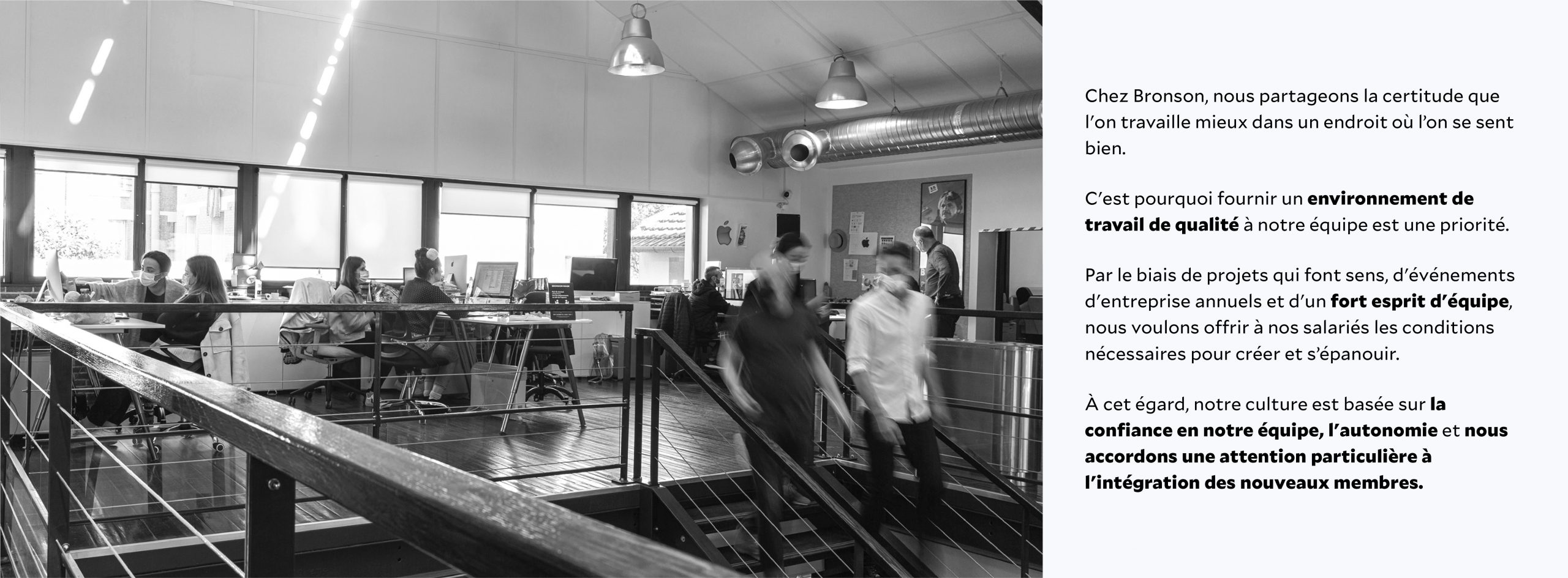 Chez Bronson, nous partageons la certitude que l’on travaille mieux dans un endroit où l’on se sent bien.